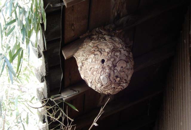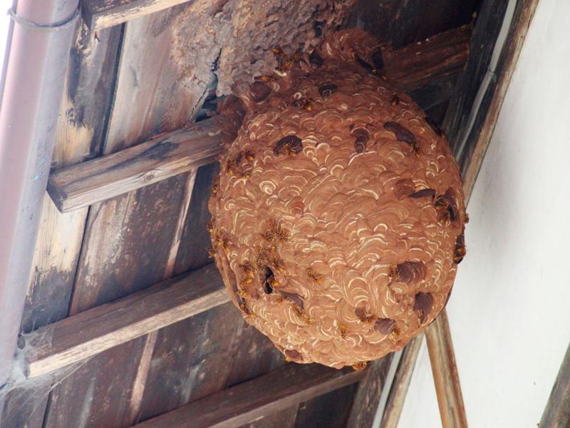 ・軒下に大きなハチの巣を作られた